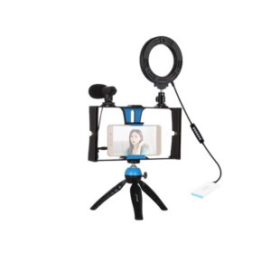 Elevate your mobile videography with the PULUZ 4-in-1 PTK3085L. This comprehensive kit provides a stable, dual-handle grip for smooth, professional-looking videos, while three standard shoe mounts allow for easy attachment of microphones and lighting. The included LED ring light, featuring adjustable brightness and color modes, ensures perfect illumination in any environment.